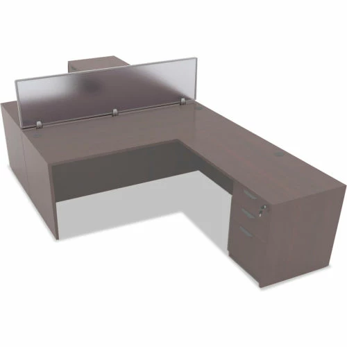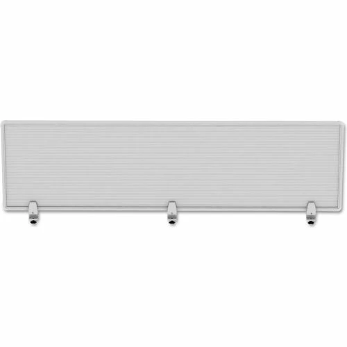 Lightweight, waterproof and impact-resistant, this semi-transparent frosted panel creates a private desk area while allowing light to filter through. Rigid metal frame for lasting stability. Strong 1-7/8″ wide metal brackets anchor panel securely to desktops up to 1″ thick; clip-on assembly with no tools required.