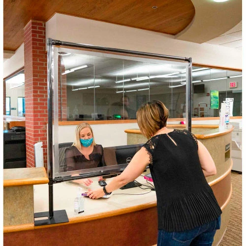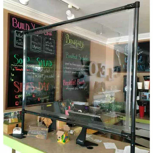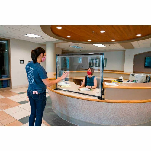 Small Porta-Shields are designed to sit on desks, counters, tables and workspaces allowing you to feel safe without feeling isolated.
