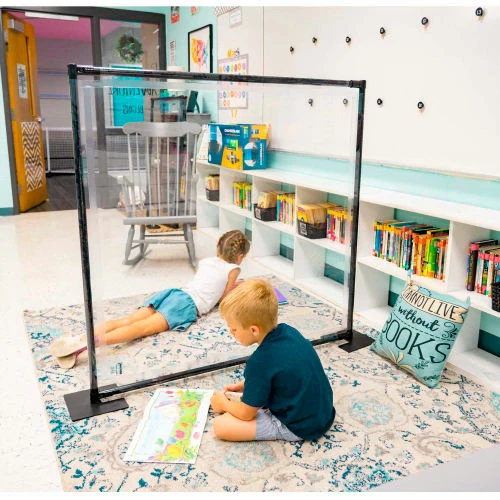 Porta-Shield Dividers feature a clear vinyl with pockets on all four sides. Securing the vinyl to the steel frame attached along with the sturdy base plates keeps the divider from tipping over. Base plates on the dividers are designed to overlap so the barriers are seamless when aligned with one another. This virtually break-proof design will not crack, split or chip making one of the top sellers on the market. Baseplate Dimensions: 8″ wide x 1/4″ tall.