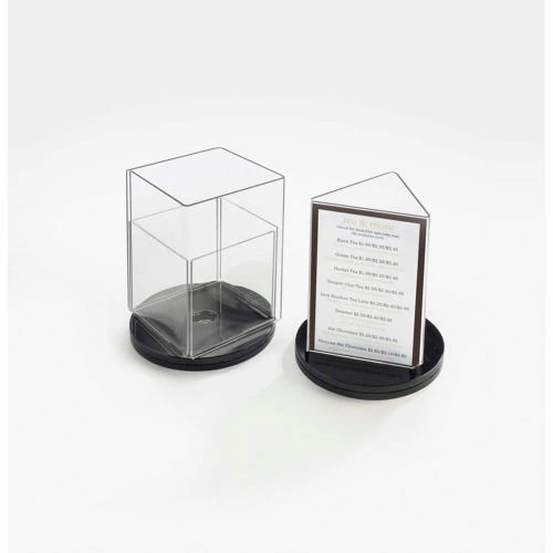 Classic, Turn able, 3 Sided tabletop cardholders. Made out of clear acrylic to display your specials, menus, and much more.