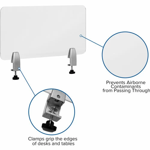 Great for school and office desks, this cough guard will create ways for individuals to have meaningful face to face conversations while helping to mitigate the risks. Adjustable clamps can be easily loosened and remounted in a different location when different configurations are needed. For those in high demand environments in close proximity to others, this shield is a must have. This clear desk shield is transparent to allow first hand discussions essential for student achievement and may help lessen the emotional toll of social distancing. Enable staff and students alike to maintain personal interactions for a more enjoyable work and school day.