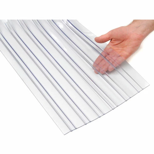 PVC Bulk Roll material is ribbed on both sides to help reduce scratches and abrasions to the strips making it ideal for heavy traffic applications. UV stabilized material retains clarity for lasting visibility and increased service life. Overlapping strips interlock for a more energy efficient enclosure. Easy to install; simply cut to length, punch hole and mount. (Hardware not included.) Provides excellent temperature resistance from -10° to 150°F. Fire-resistant, as well as self-extinguishing, and registered as such by the California state Fire Marshal’s office.