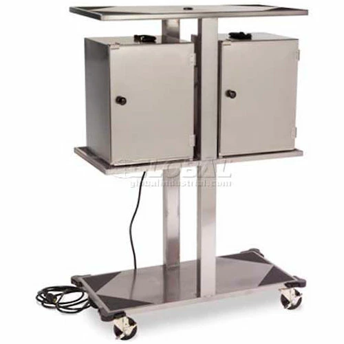 - Rolls easily on 4″ all-swivel casters (2 with brakes)