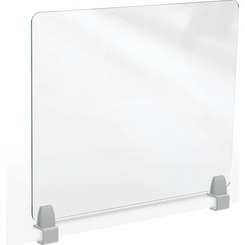 Keep your students, staff, and customers safer and more protected from the spread of germs with a Clarity Acrylic Desktop Divider. Available in three different configurations to suit your desktop needs: edge clamp for mounting on the edge of the desktop, center clamp to divide a desktop for more than one user, or freestanding to mount wherever needed on the desktop. Use more than one to protect on all sides. Ideal for use in classrooms, offices, or any customer-facing applications. Powder-coated aluminum mounts feature a rubber pad to protect surfaces. Freestanding models include double tape mounting option. Acrylic panels are 24″ high, and are available in multiple widths from 23″ to 72″ to fit virtually any desktop up to 1-3/5″ thick. Mix and match sizes to fit your desks and tables.