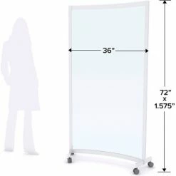 Quantum Curved Rigid Mobile Floor Partition, 1-Panel, 36"W x 72"H, Clear, Aluminum Frame