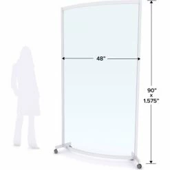 Quantum Curved Rigid Mobile Floor Partition, 1-Panel, 48"W x 90"H, Clear, Aluminum Frame