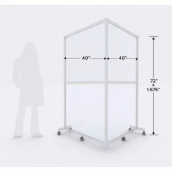 Quantum Cornered Mobile Floor Partition, 2 Panel, 80"W x 72"H, Alum. Frame, Frosted Acrylic Inserts