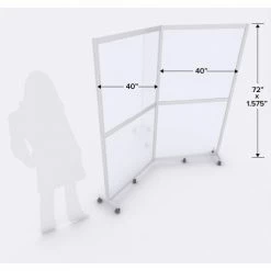 Quantum Cornered Mobile Floor Partition, 2 Panel, 80"W x 72"H, Aluminum Frame, Clear Acrylic Inserts