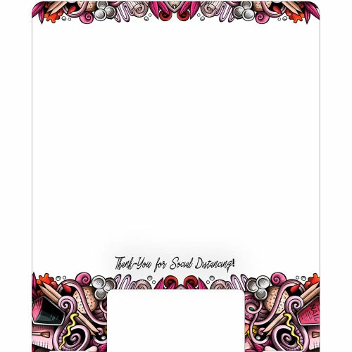 Our Cashier Guard is the perfect personnel protection barrier for any counter or desktop installation. Made of polycarbonate, these barriers promote social distancing and a safe work area. Each guard kit includes a face panel, two side support uprights and twelve panel assembly clips. The face panel includes a convenient pass thru opening for transactions. Once assembled, the unit is strong and sturdy while also being lightweight for simple movement from one positon to another. Minimal maintenance required, as the surface may be cleaned by an array of window or disinfecting products to keep your guard clear and free of bacteria. Pass-through Size: 15″ x 5″. Message on Cashier Guard: (Salon)Thank-You for Social Distancing